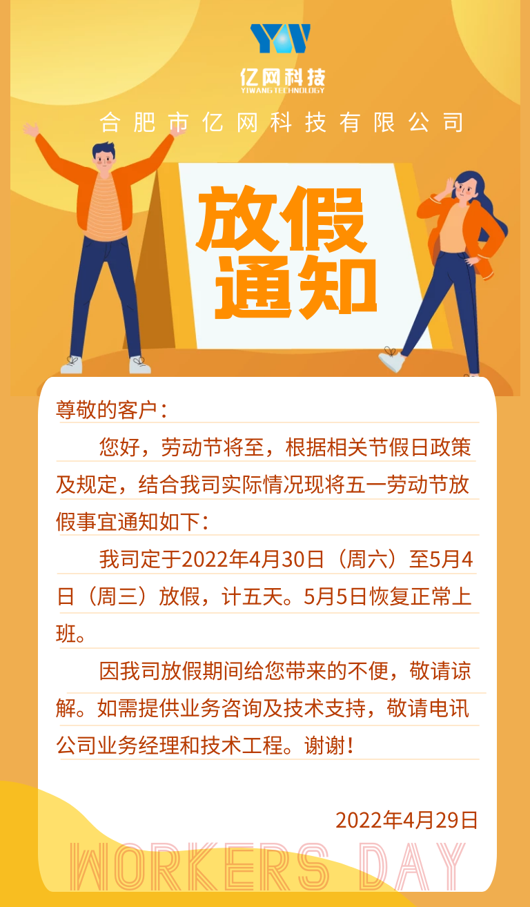合肥市億網科技有限公司五一節放假通知